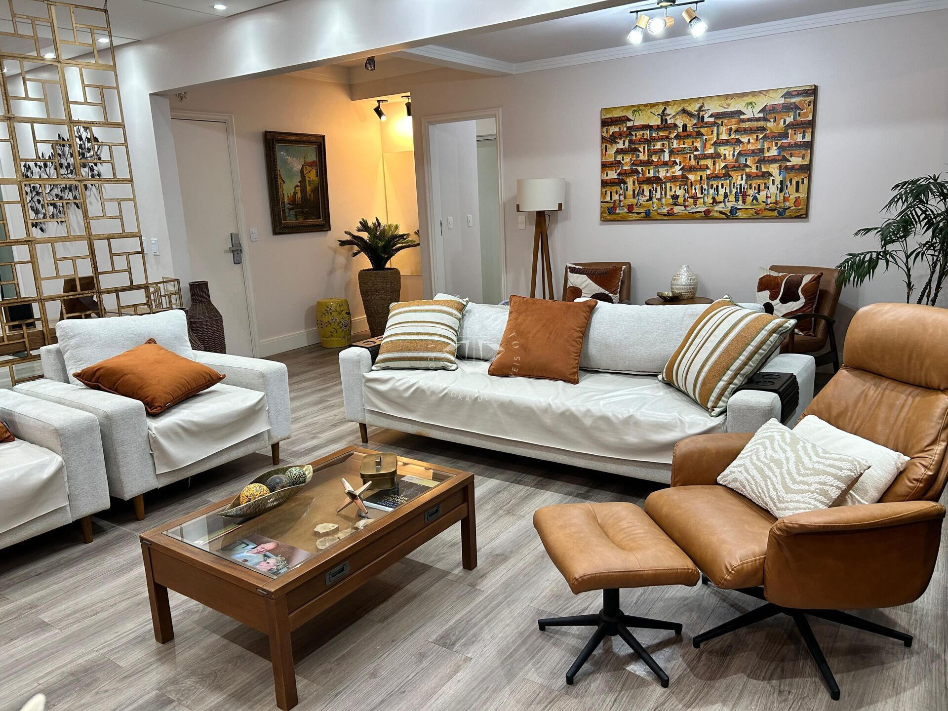 O apartamento conta ainda com lavabo, cozinha equipada com coifa, lavanderia, banheiro de serviço atualmente utilizado como despensa e uma dependência que hoje funciona como closet geral, trazendo versatilidade ao espaço. Já há permissão para instalação de ar-condicionado split, caso seja a sua preferência.