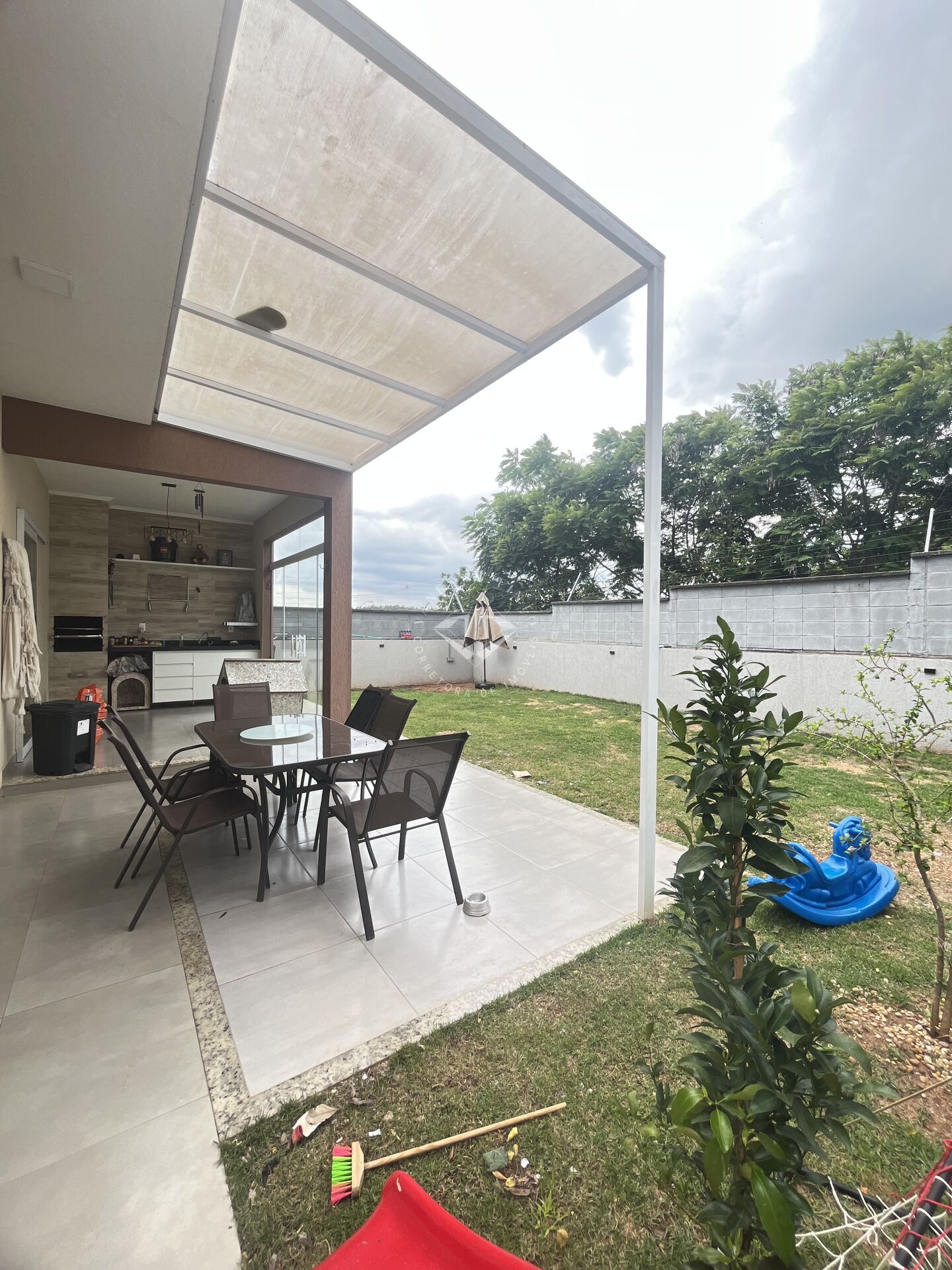 A área gourmet, completa e com fechamento em vidro, foi feita para quem ama receber — seja para um almoço de domingo, um café da tarde ou momentos especiais ao lado de quem importa. E para completar, o quintal gramado e sem vizinhos de fundo oferece aquele respiro que faz diferença: privacidade, paz e um espaço perfeito para relaxar, brincar ou até planejar novos projetos ao ar livre.
