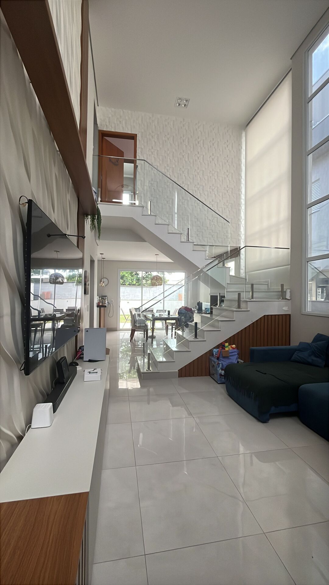 Ao entrar, a sala com pé direito alto e seus ambientes integrados cria aquela sensação imediata de amplitude, luz natural e bem-estar. O piso em porcelanato traz elegância e fácil manutenção, enquanto as esquadrias em alumínio valorizam ainda mais a estética moderna da casa. No térreo, um escritório funcional — que também pode se tornar um quarto extra — traz praticidade para quem trabalha em home office ou precisa de mais versatilidade. A cozinha estilo americana integra momentos, aproxima conversas e torna tudo mais prático no dia a dia. A lavanderia espaçosa, já com armários, garante organização sem esforço.