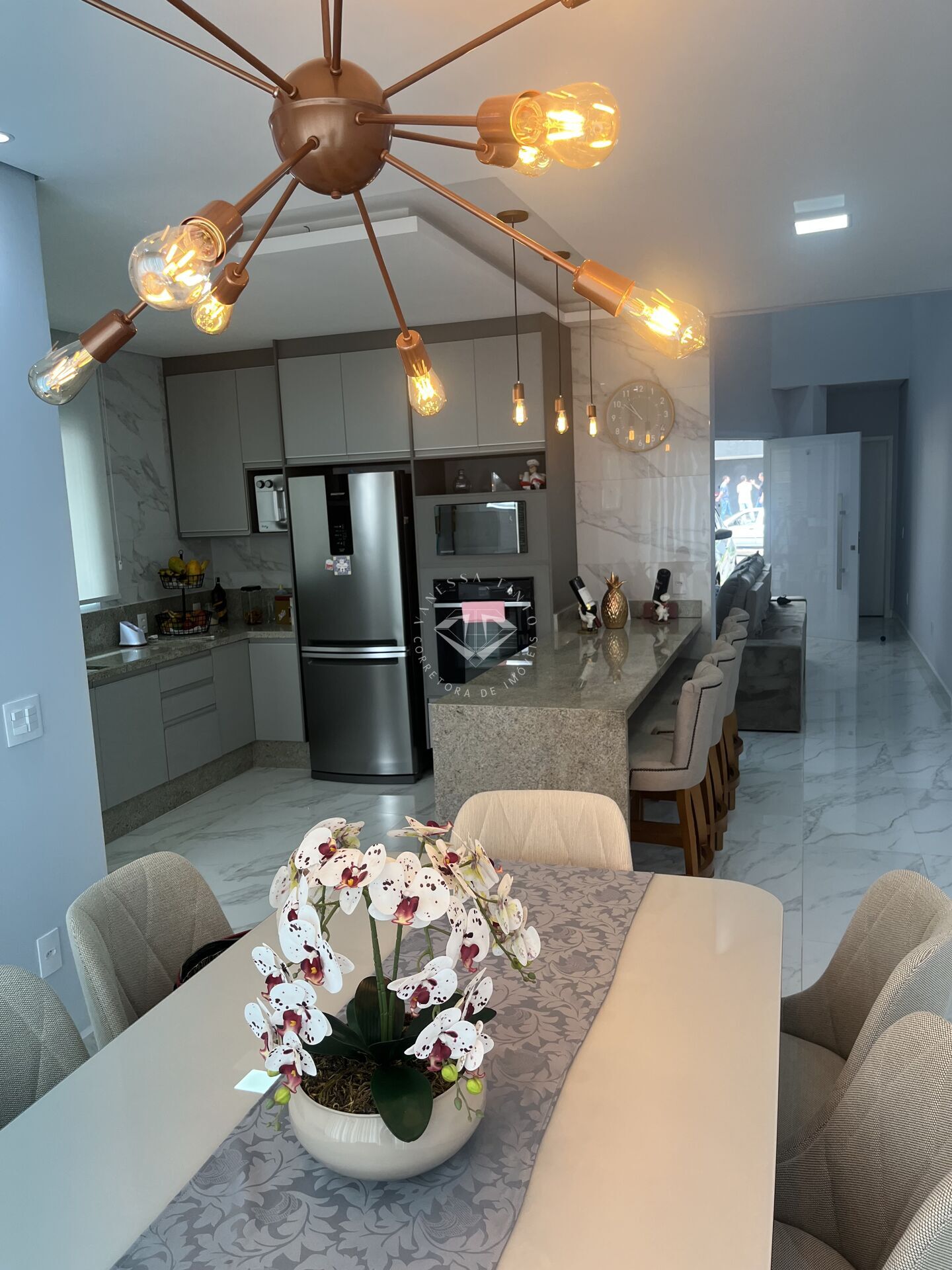 A sala de jantar integrada à cozinha é o coração da casa, um lugar onde você pode compartilhar refeições e risadas com seus entes queridos. A lavanderia com acesso à área gourmet traz funcionalidade ao dia a dia, permitindo que as tarefas sejam feitas com facilidade.